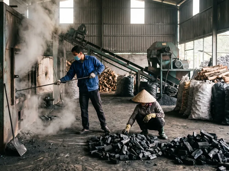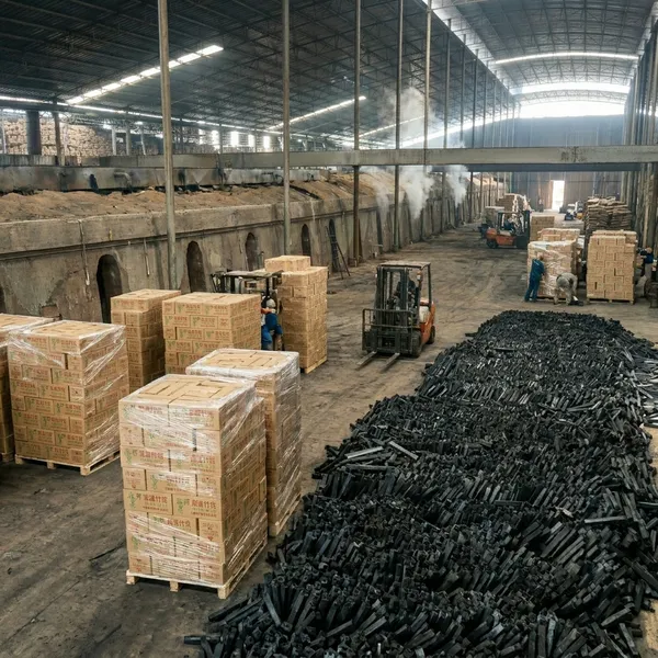 High-density hardwood carbonized at 1000°C for smelting and commercial grilling requiring 5+ hour cycles.